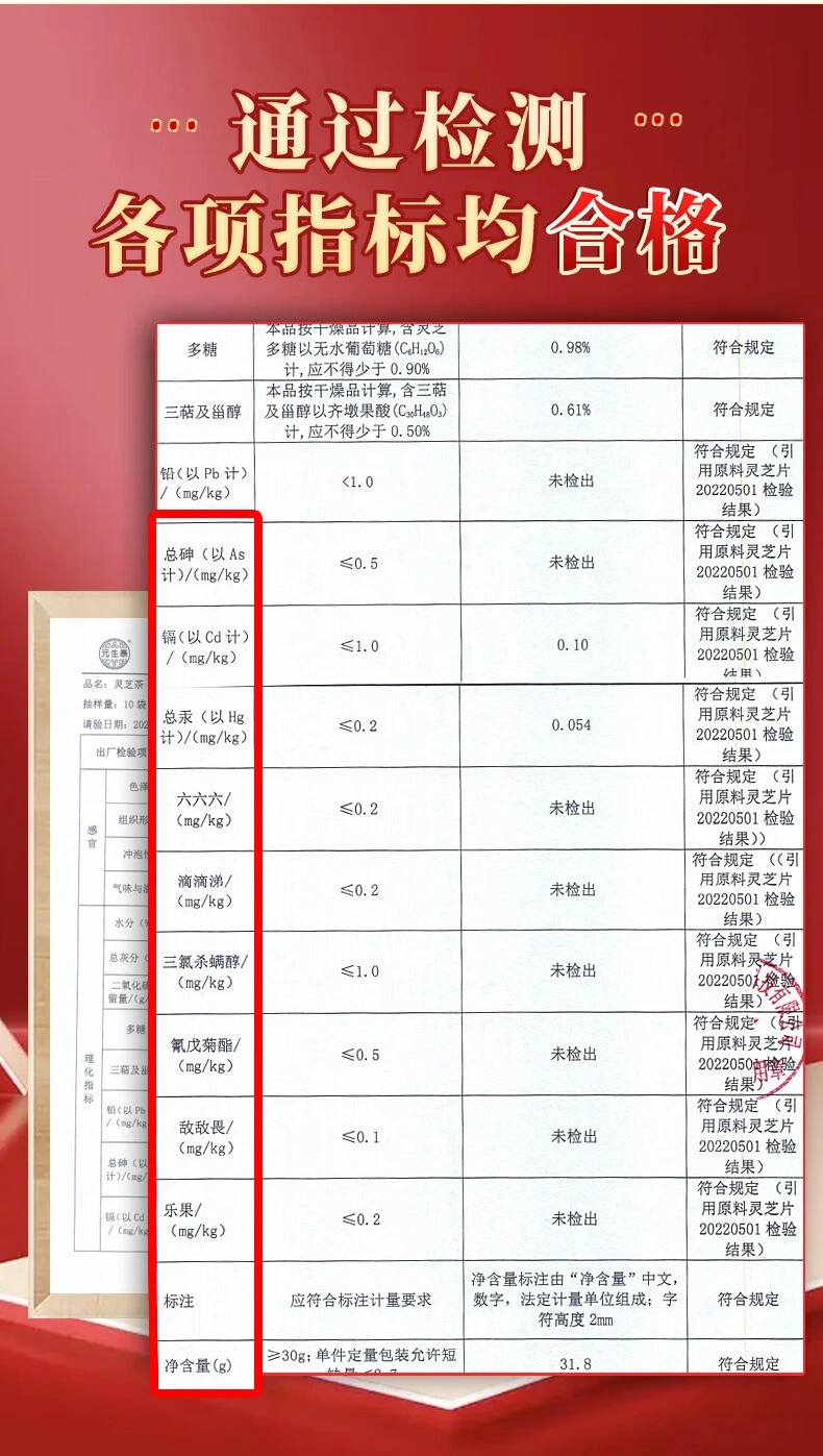 灵芝多糖0.98%、灵芝三萜0.61%